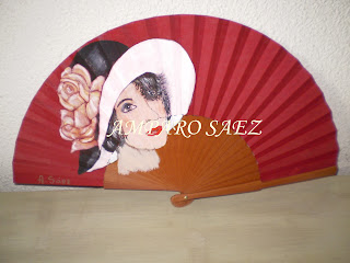 Hola de nuevo, hoy os enseño este abanico que pinté siguiendo en la línea de los sombreros que inicié la primavera pasada.